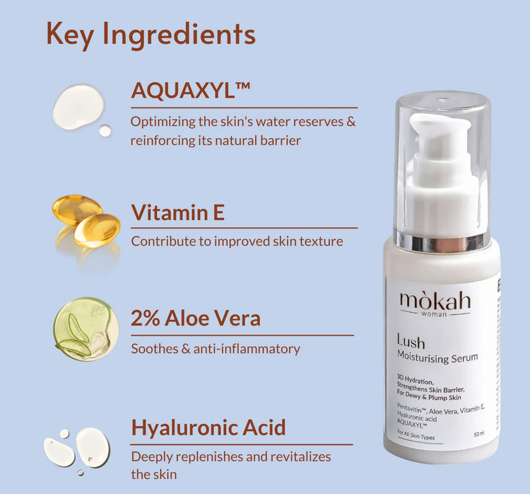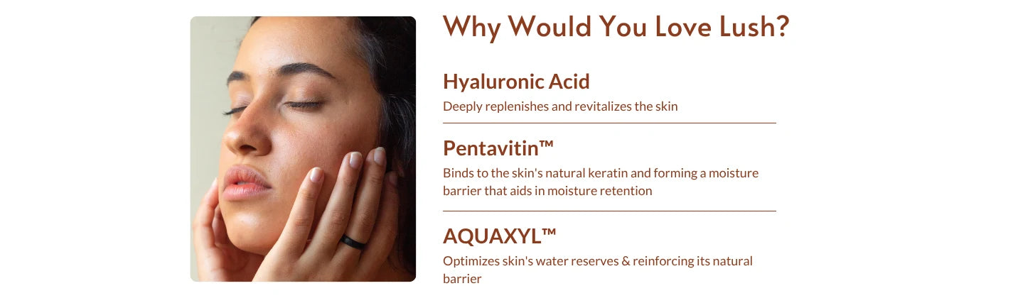 Lush is an ultra-rich moisturizing serum that delivers long-lasting hydration and locks in moisture for improved skin health and radiance. Formulated with Pentavitin™, Vitamin E, Aloe Vera, and Hyaluronic Acid, it pampers the skin with 3D hydration, strengthens the skin barrier, and leaves it dewy and plump.