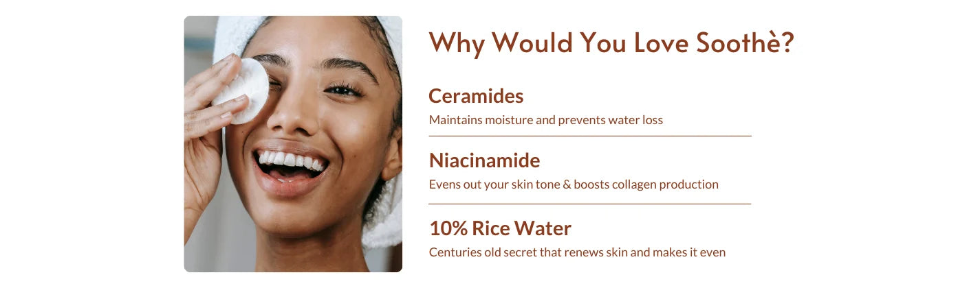 - Soothè Toner: Alcohol & fragrance-free toner, and packed with 60% hydrated ingredients for clean, pH balanced skin.